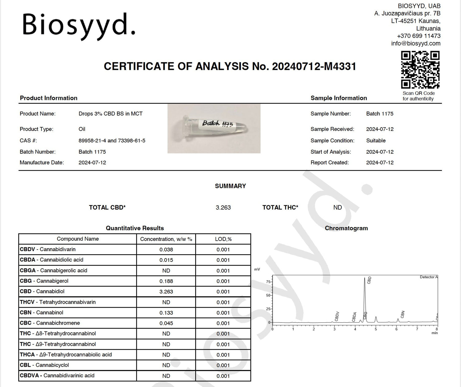 Biosyyd社のCBDオイルはブロードスペクトラムオイルのみ
